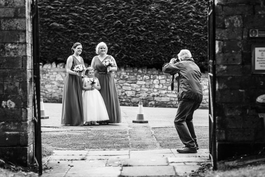The photograph story begins with the bridal preparations at her mothers home in Bridgend. I left a little ahead of the bridal party, leaving them to make the last few adjustments whilst I caught up with the groom, patiently waiting and greeting guests at St Mary’s Church in Coity. The drinks reception and wedding breakfast was hosted at the Coed Y Mwstwr Country Hotel.