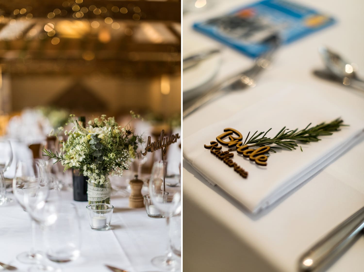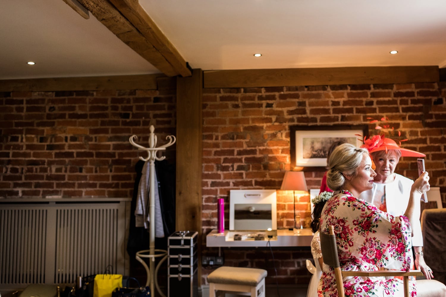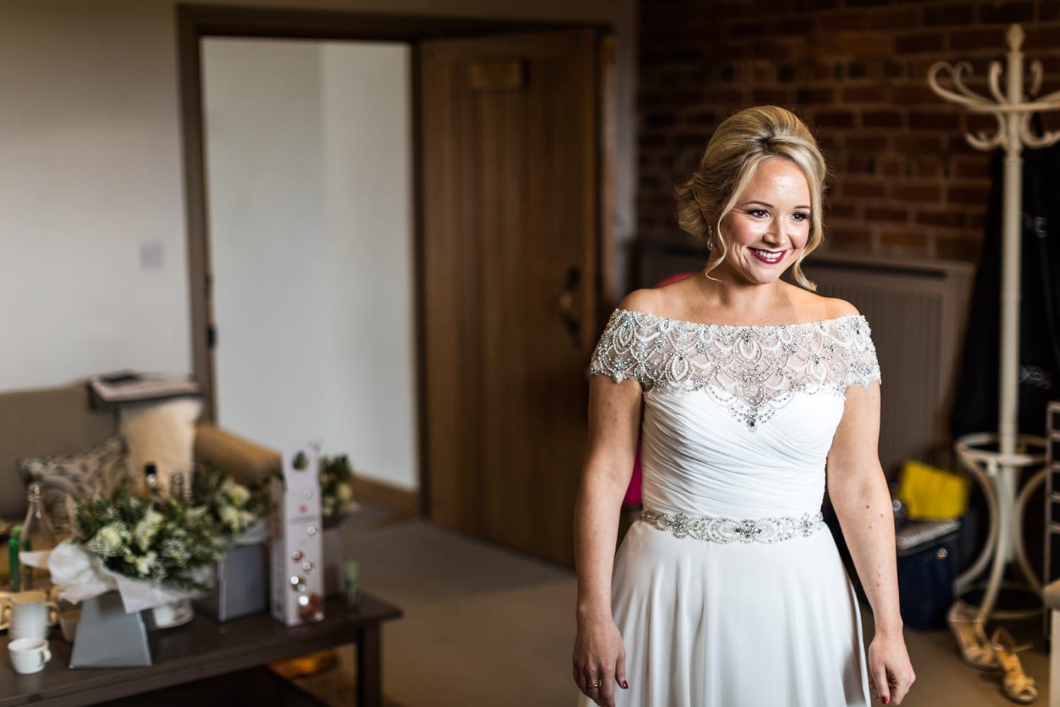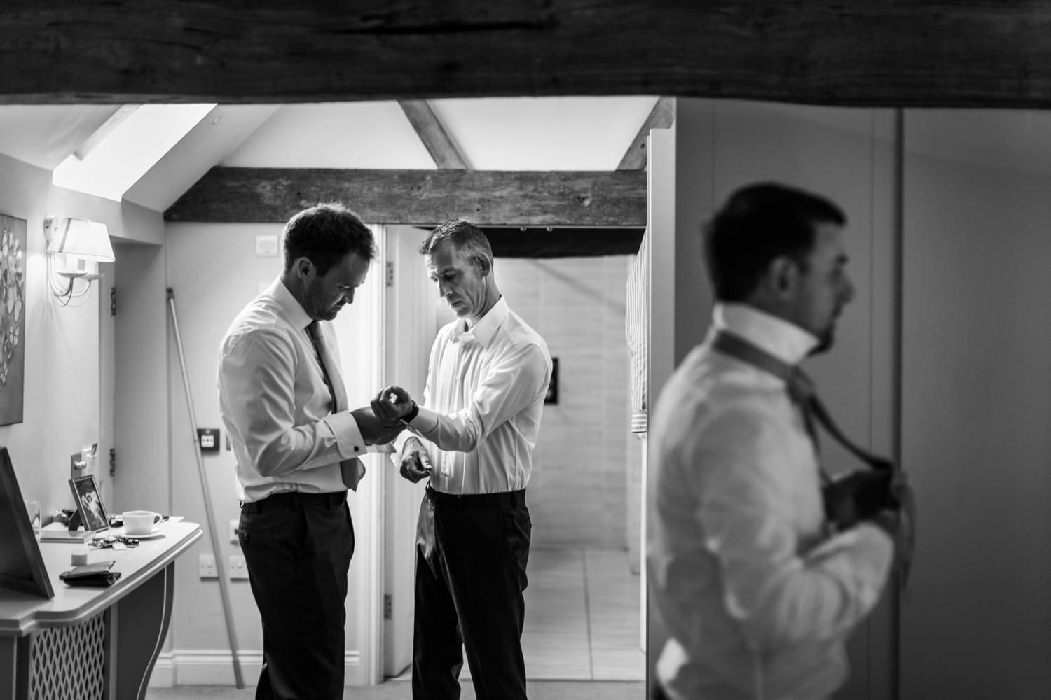 On 2nd October I travelled just over the English border to the county of Worcestershire. I had made the journey to photograph the wedding of Katherine and James at Curradine Barns. This West Midlands wedding venue is set in the heart of the countryside and includes a perfect example of restored early 19th century red brick rural architecture. I meet up with the bride and her entourage during their preparations for the big day, in the venues purpose built bridal dressing room. The groom, best-man, and usher, were also getting dressed on site, temporally making use of the honeymoon suite, situated in a little cottage amongst the gardens of Curradine. The marriage ceremony took place in the rustic granary barn, followed by drinks served in the picturesque courtyard, making the most of the warm autumnal day. The old barley barn provided the space for the formal wedding breakfast, boasting a light and airy colour scheme, bathed in natural light thanks to the wall of picture windows overlooking the courtyard.