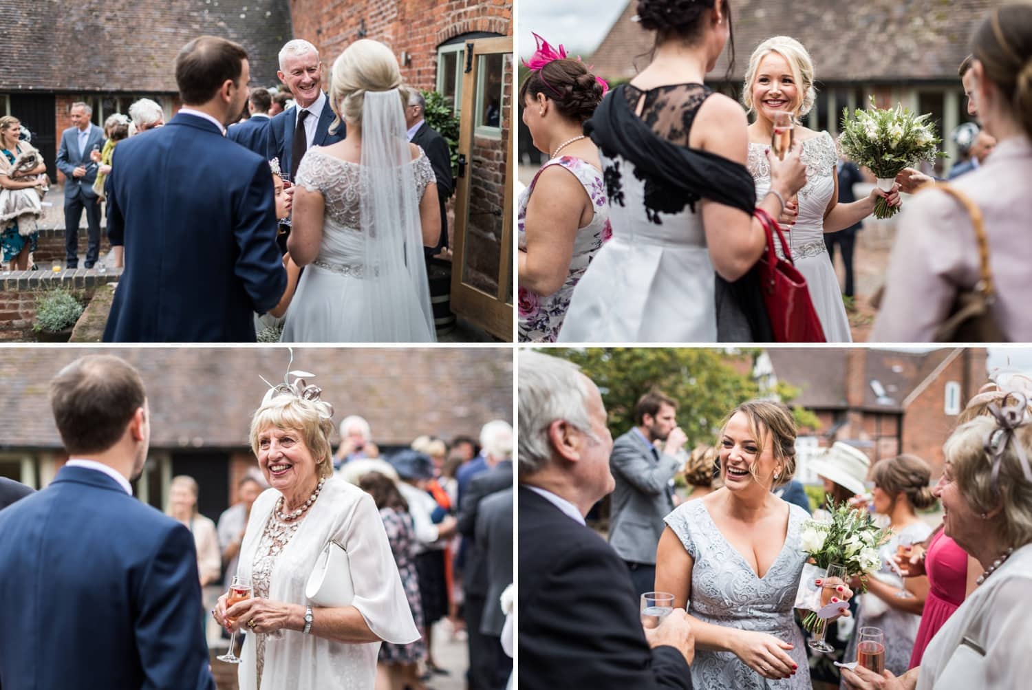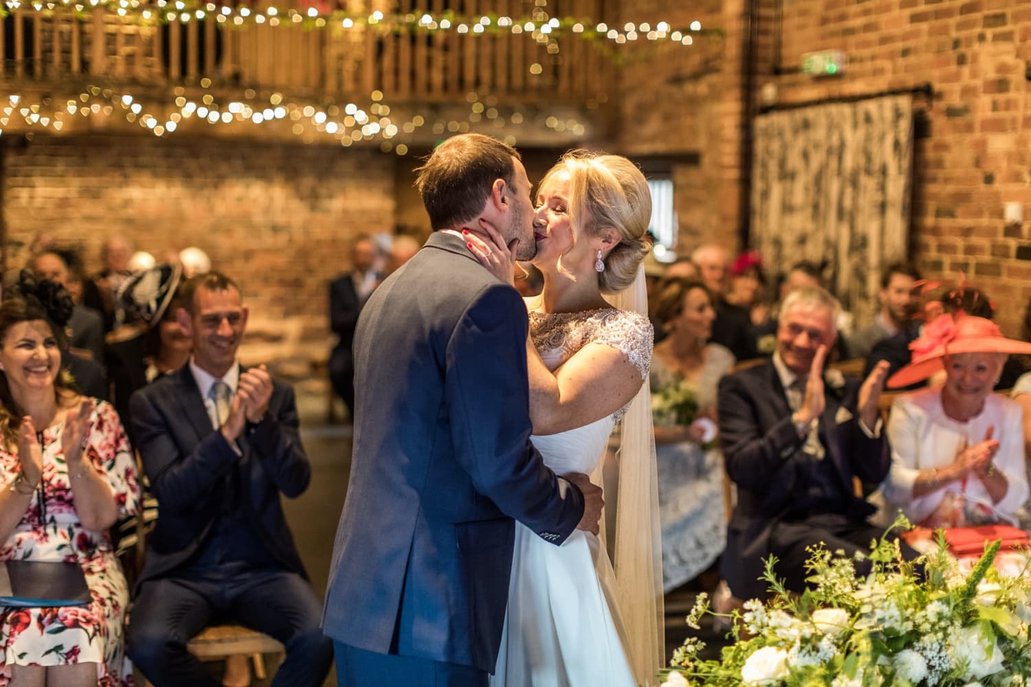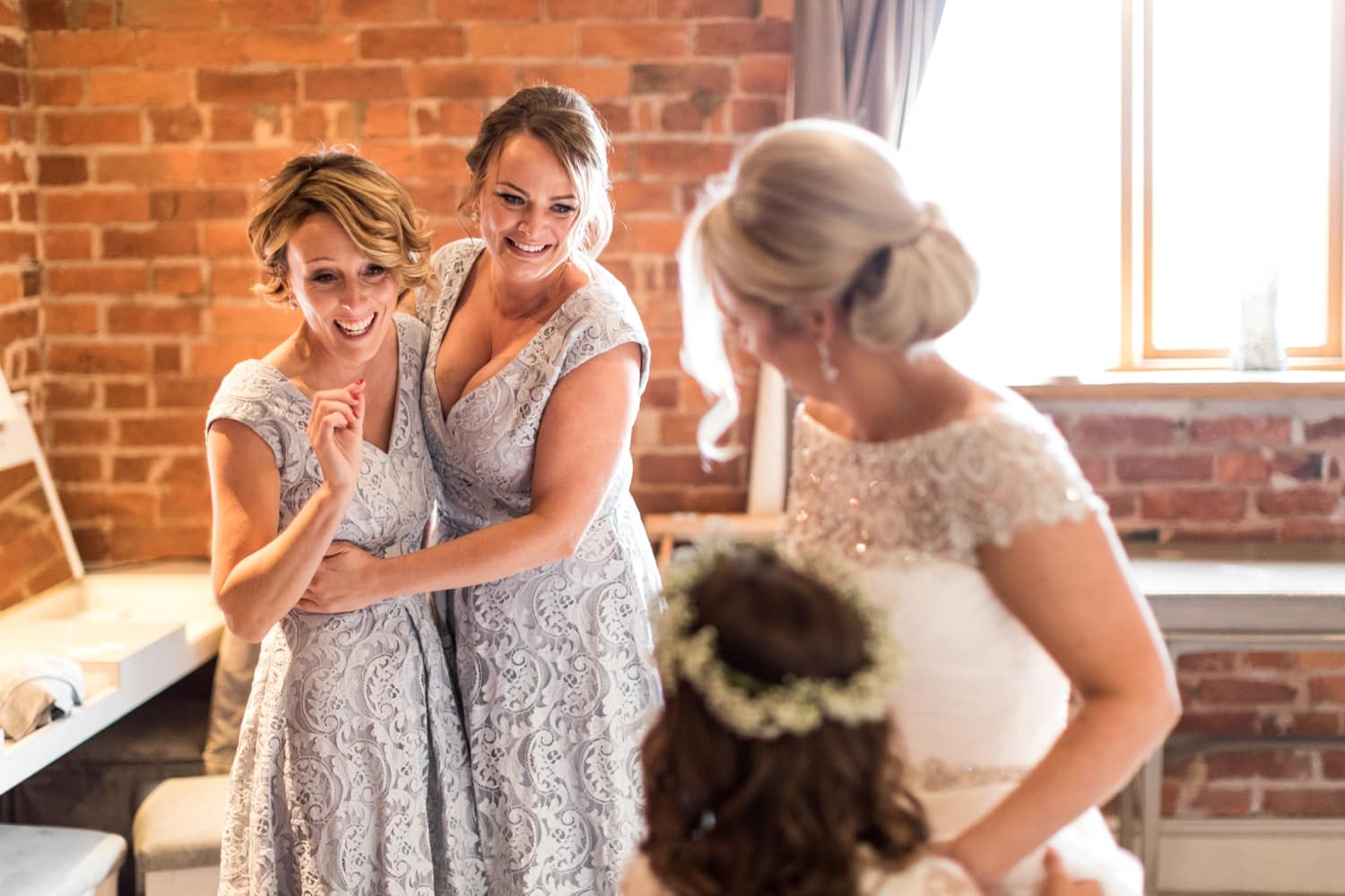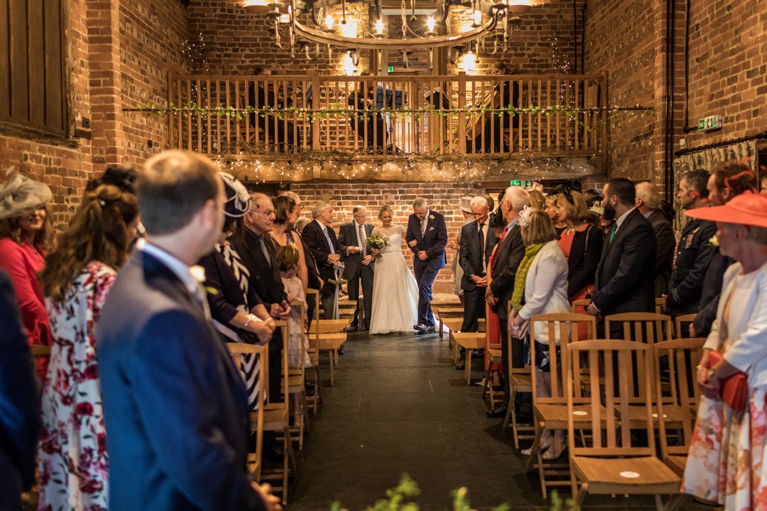 On 2nd October I travelled just over the English border to the county of Worcestershire. I had made the journey to photograph the wedding of Katherine and James at Curradine Barns. This West Midlands wedding venue is set in the heart of the countryside and includes a perfect example of restored early 19th century red brick rural architecture. I meet up with the bride and her entourage during their preparations for the big day, in the venues purpose built bridal dressing room. The groom, best-man, and usher, were also getting dressed on site, temporally making use of the honeymoon suite, situated in a little cottage amongst the gardens of Curradine. The marriage ceremony took place in the rustic granary barn, followed by drinks served in the picturesque courtyard, making the most of the warm autumnal day. The old barley barn provided the space for the formal wedding breakfast, boasting a light and airy colour scheme, bathed in natural light thanks to the wall of picture windows overlooking the courtyard.