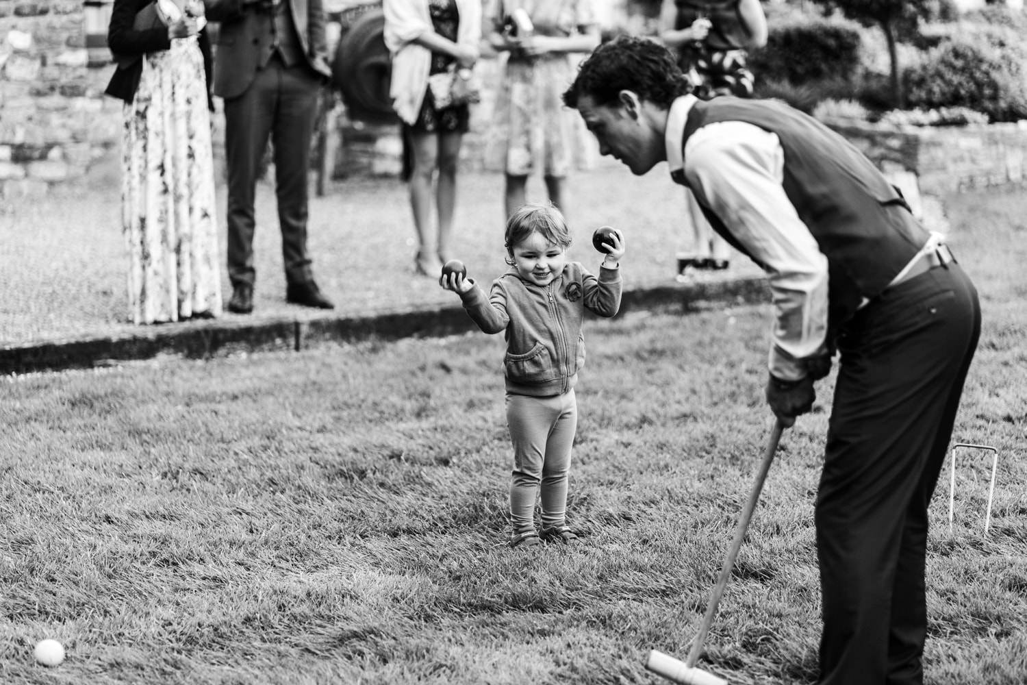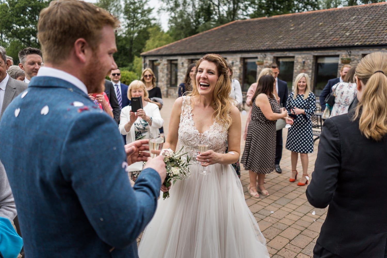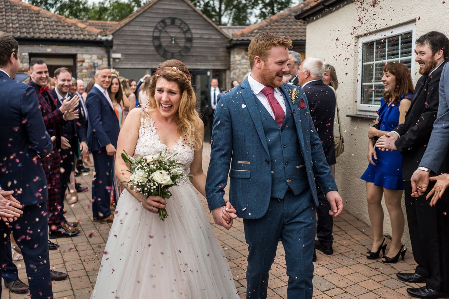 Katie & Niall were married on Saturday 18th May 2019 at Aldwick Court Farm, Bristol. I met up with Katie in the morning at her home in Bristol, where she was getting ready with her bridesmaids. Once dressed I left them early to meet up with Niall at Aldwick, where he was greeting guests for the marriage ceremony in a converted barn. Aldwick has been a family run farm and vineyard for five generations, it now hosts events such a weddings and corporate events whilst still producing award winning english wine. In time the bride arrived and the Bristol registrars guided them through the ceremony. After which the collected family and friends showered them in confetti.Once the congratulatory hugs and kisses were given we took out ten minutes or so for a few group family photographs and some bride and groom portraits in the grounds. As with the beginning of the day the remainder was photographed in a documentary fashion without intrusion or instructions. During the wedding breakfast the newly wed couple had thoughtfully provide a little play area for the few children that were in attendance. It was then on to the speeches, then some croquet and but more mingling before the evening dancing took place.