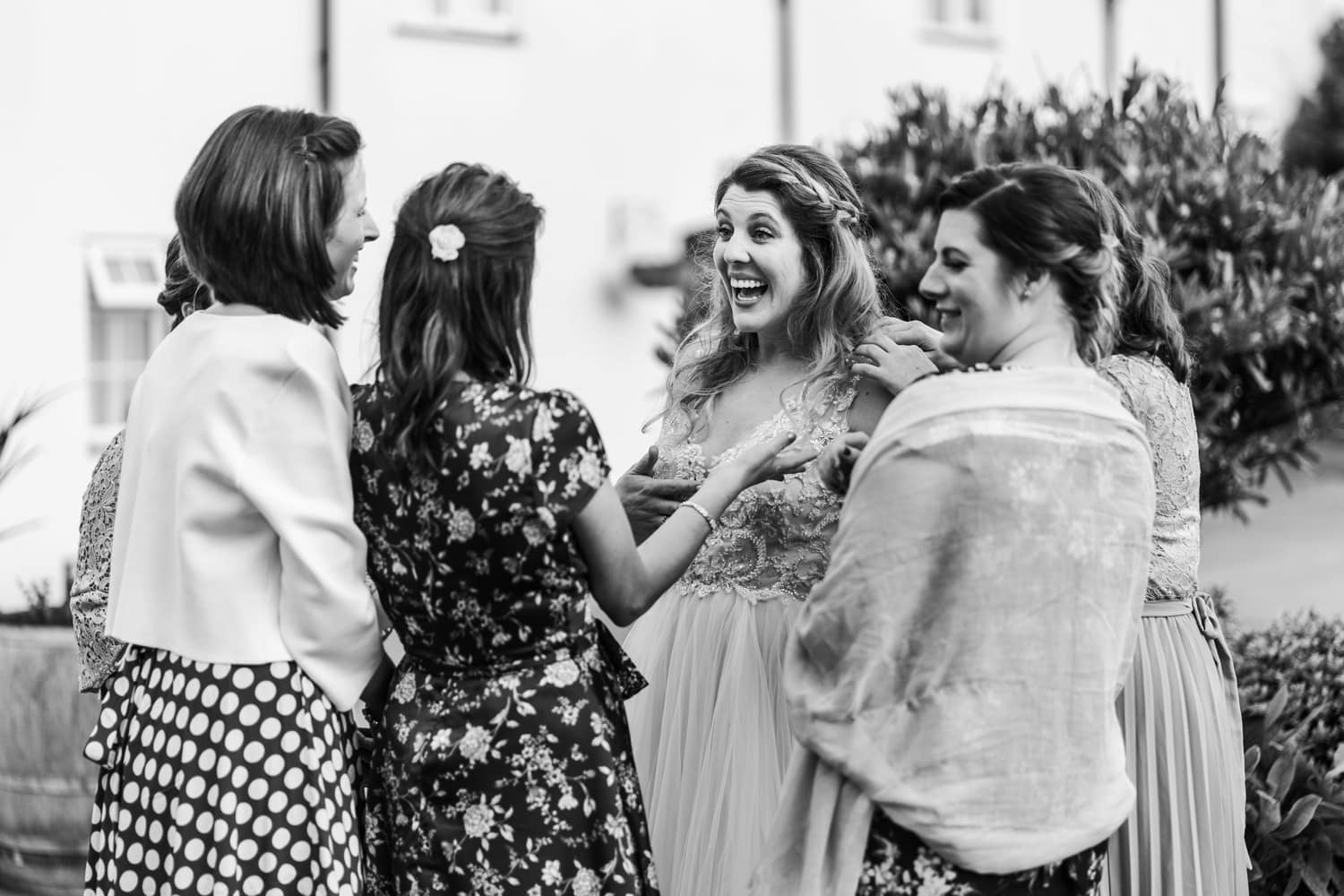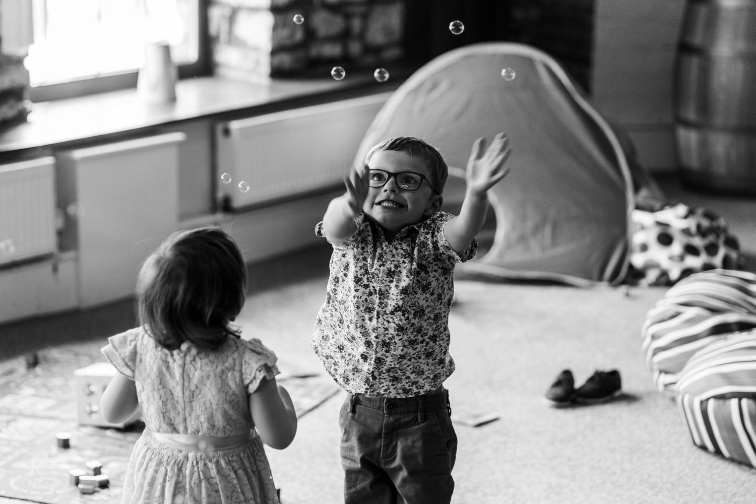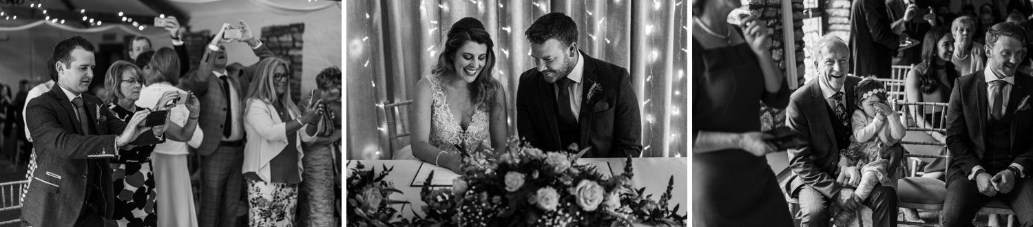 Katie & Niall were married on Saturday 18th May 2019 at Aldwick Court Farm, Bristol. I met up with Katie in the morning at her home in Bristol, where she was getting ready with her bridesmaids. Once dressed I left them early to meet up with Niall at Aldwick, where he was greeting guests for the marriage ceremony in a converted barn. Aldwick has been a family run farm and vineyard for five generations, it now hosts events such a weddings and corporate events whilst still producing award winning english wine. In time the bride arrived and the Bristol registrars guided them through the ceremony. After which the collected family and friends showered them in confetti.Once the congratulatory hugs and kisses were given we took out ten minutes or so for a few group family photographs and some bride and groom portraits in the grounds. As with the beginning of the day the remainder was photographed in a documentary fashion without intrusion or instructions. During the wedding breakfast the newly wed couple had thoughtfully provide a little play area for the few children that were in attendance. It was then on to the speeches, then some croquet and but more mingling before the evening dancing took place.